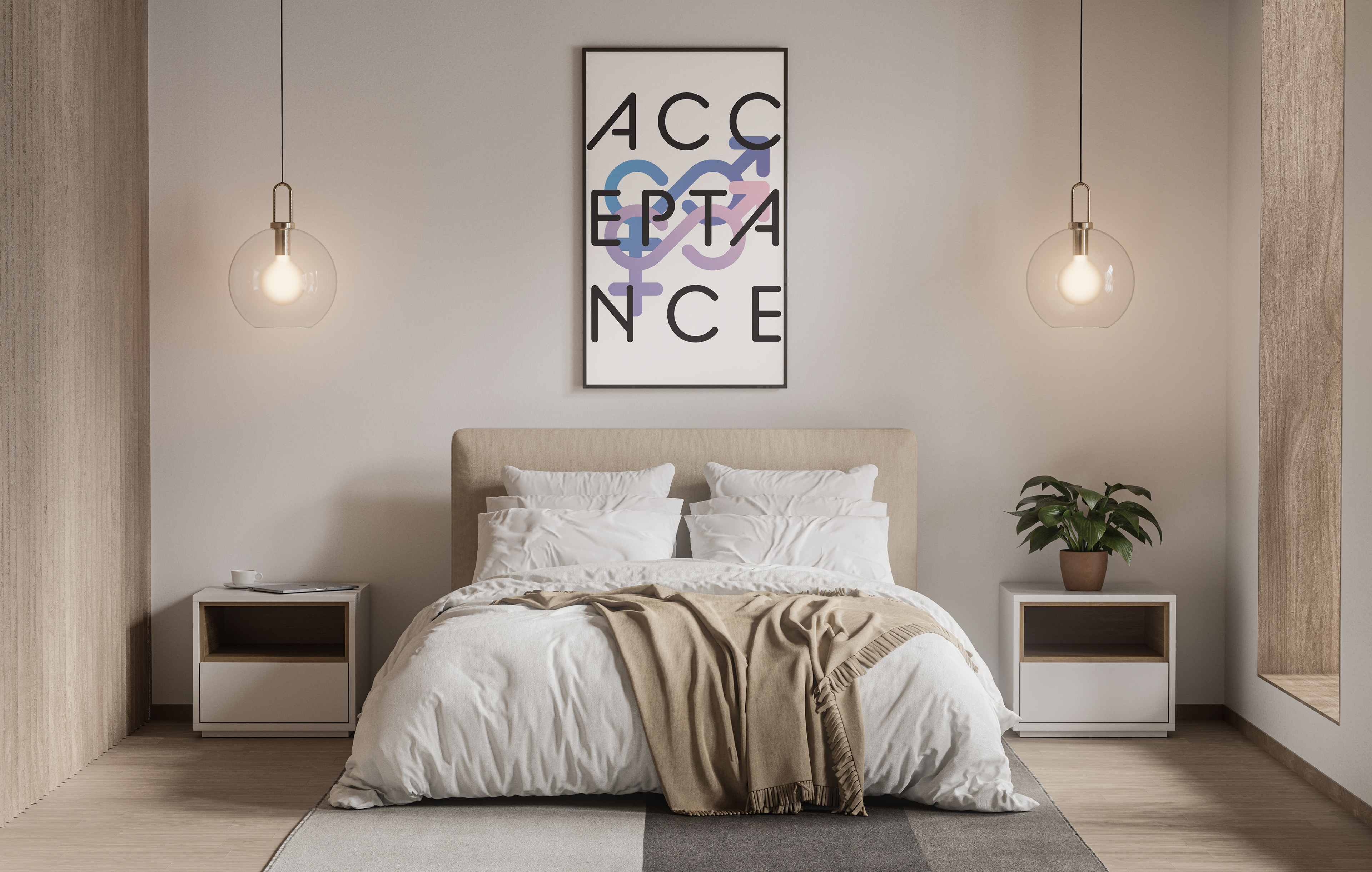 Emotion poster based on Acceptance. The main graphic can touch upon main aspects. For one person it might be gender based acceptance, for another it might be sexuality acceptance. It all depends on the viewer looking at the poster.